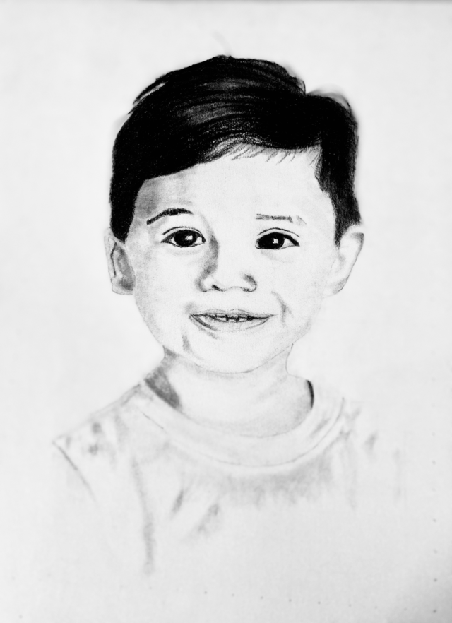 'Harmony' captures the pure joy and energy of childhood in charcoal. The child's blissful expression radiates a sense of happy harmony and simple pleasures.